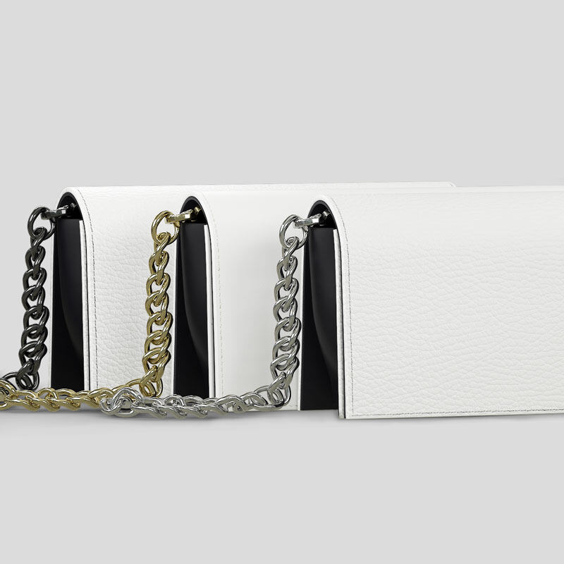 Your evening bag begins with your design. Using our 3D model viewer, you can upload images, photos and text to create the perfect virtual evening bag. Once you're happy, our industry-leading printers will print onto Nappa leather, before our team of skilled leatherworkers cut, shape and stitch your bag into life by hand, using the leather option, thread and metal colour of your choice. The detachable leather strap, the sides and the base of your bag will always be made from smooth black Nappa leather to provide a timeless backdrop to your design. The strap as well as the black areas of the main bag are included in our premium service: expertly hand-painted edges. The finishing touch to your sleek evening design.