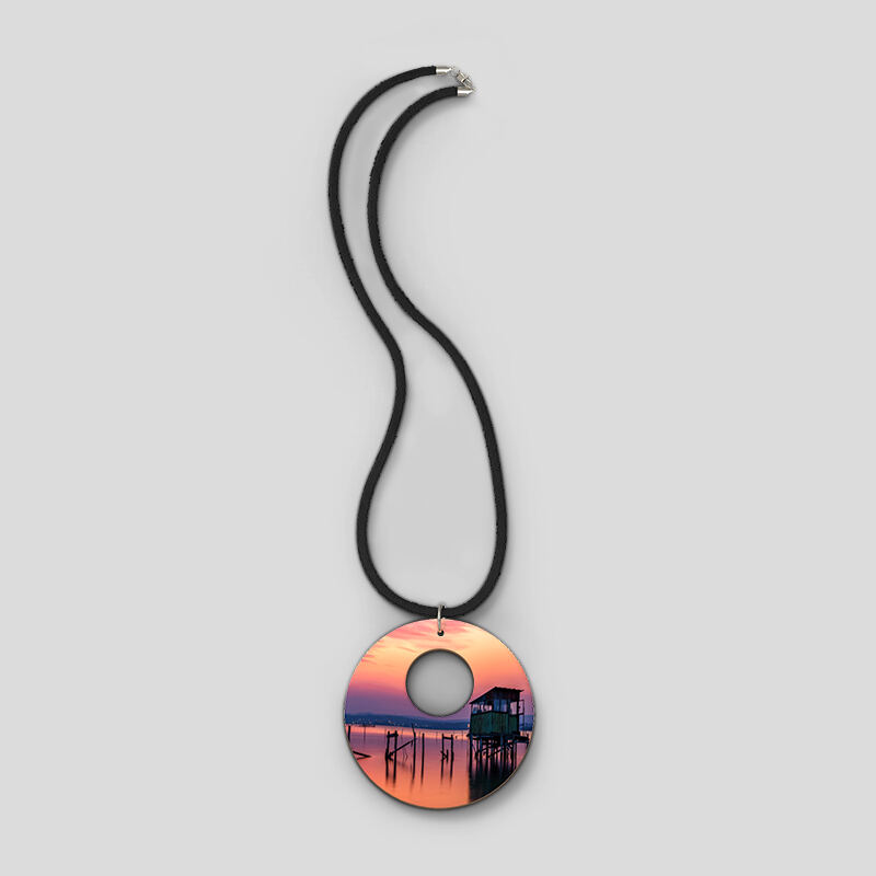 Every customised wood necklace is printed with your artwork, sealed on the reverse to enhance the natural grain and finished with a sterling-silver jump ring.