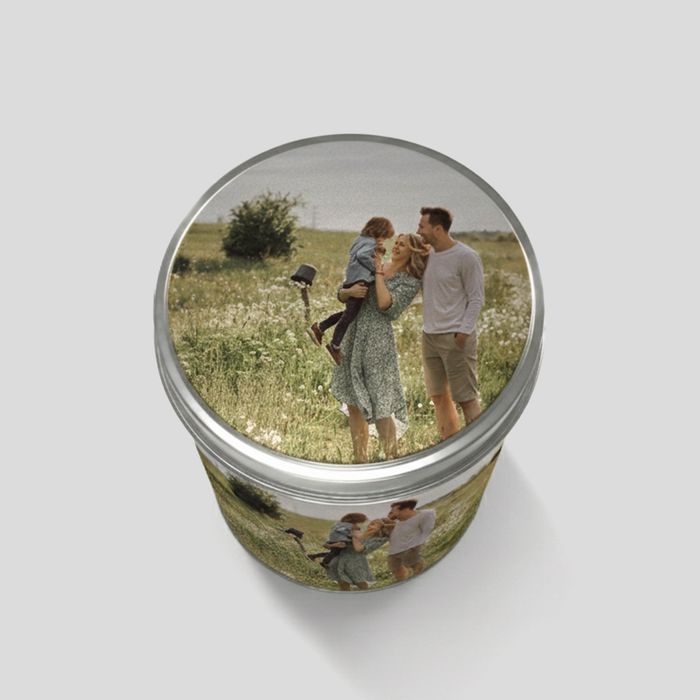 Your design is printed onto a specialist adhesive photo paper using permanent digital printing methods. We individually apply each label to the tin after printing to ensure that it is done with precision. The lid is specially moulded to fit perfectly and securely atop your tin, ensuring that everything kept within it stays fresh for as long as possible.