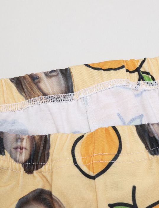 Your design is printed using a sublimation technique that bonds the eco-friendly inks to the jersey fibres. This means your print becomes one with the material and therefore won't peel off. The printed fabric is then cut to shape and size before handed over to our seamstresses, who sew in the elasticated waistband and do any necessary hemming and stitching. Your pyjamas make their rounds through quality control before being shipped to you.