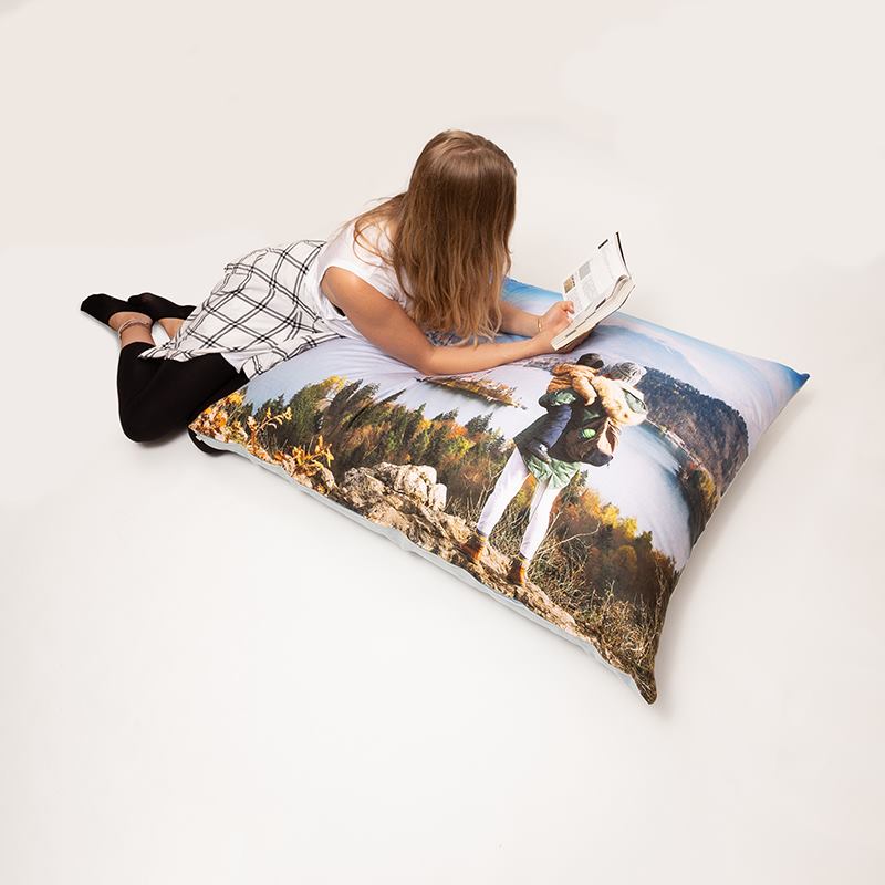 Perfect for napping, kids love to snooze on these big floor cushions curled up in their own dreamland. They're also great for propping yourself up against the sofa or using as a giant footrest. The material we use is soft but a lot tougher than it looks, so your personalised large floor cushions are outdoor friendly - ideal for patios and picnics. Printed onto the front as standard, and with optional double sided printing, you can really make a statement piece of furnishing that's sure to be everyone's favourite spot in the house.