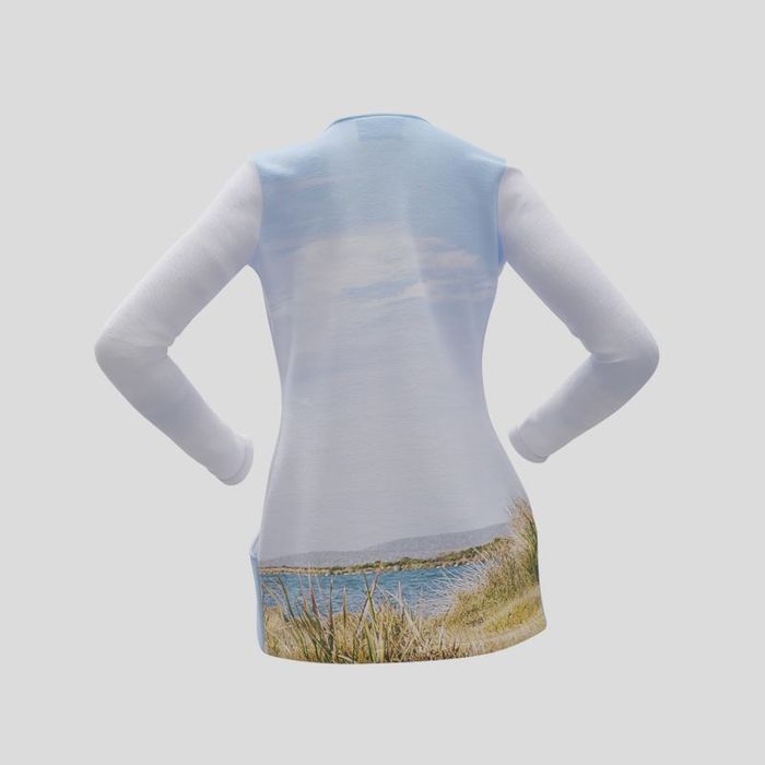 When you make your own custom lightweight cardigan, you can upload as many photos to our online design tool as you like. You can then use these to make modest single photo design cardigans with pockets or you can create a collage.