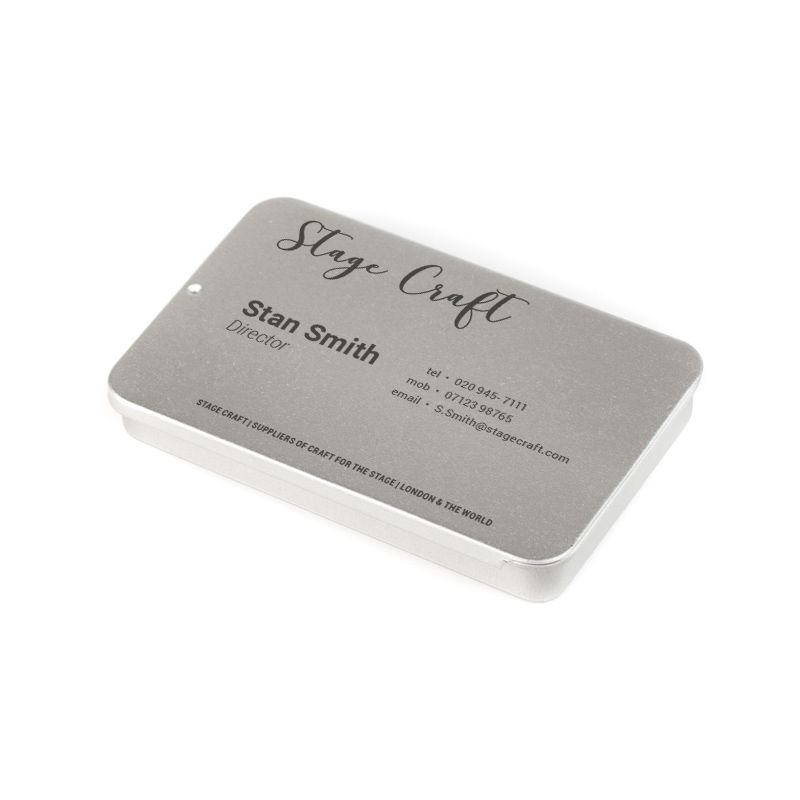 Your personalised business card holder is produced using state-of-the-art print technology. Eco-friendly inks are infused directly into the metal lid, creating a smooth matte finish with vibrant, durable colour. Our specialist team then assembles and quality-checks every case by hand before dispatching it to you.