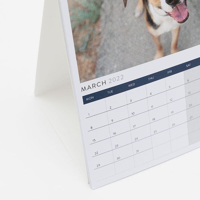 Celebrate the year with these stunning A6 desk calendars. Choose your own photos to create a fun and personal calendar, or create photo collage montages in our online design studio. Your designs are beautifully printed on high quality 160gsm paper with a satin finish, giving a smooth and modern look. The paper is backed onto cardboard to create a sturdy and durable calendar, which is completed with a white metal wire binder. Your photos will be reproduced using environmentally friendly inks which give a vibrant colour and produce beautiful calendars which will be remembered for a lifetime. Every calendar is handmade onsite by our skilled crafters, and given the highest level of care and attention.
