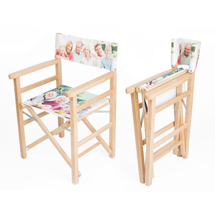 Because the backrest sling is printed on both sides, you can create two looks in one. Add a name or monogram to the outside for that monogrammed camping chair vibe, then switch to a scenic photo on the back for lazy days by the dam. Remember the backrest is landscape-oriented, so a collage of smaller pics often works best.