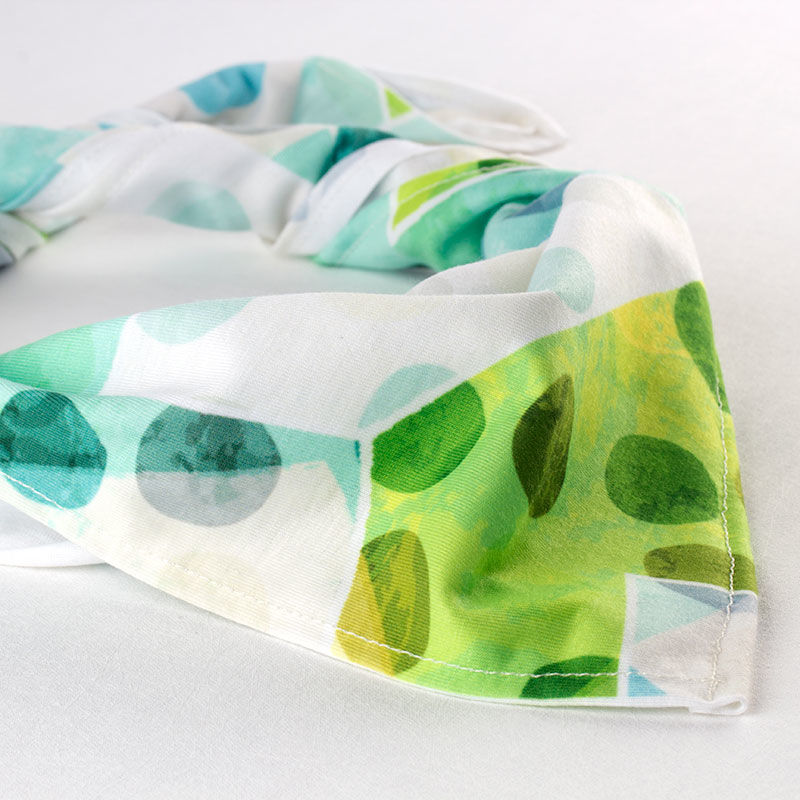 Pima Lawn fabric produces a gorgeous photo reproduction, with colours bold and details sharp. Your designs are printed edge-to-edge for maximum impact, please note that the edges of the bandana are created with a pin hem. Within the design interface, this is marked out as the bleed area, so you can clearly see which elements of your design will be used as the pin hem.