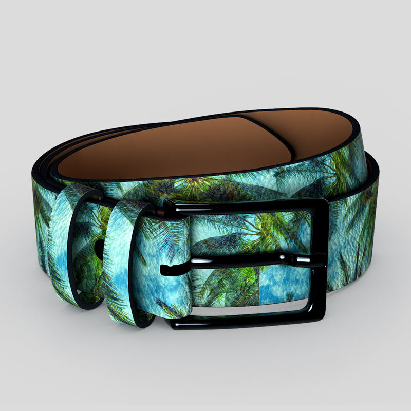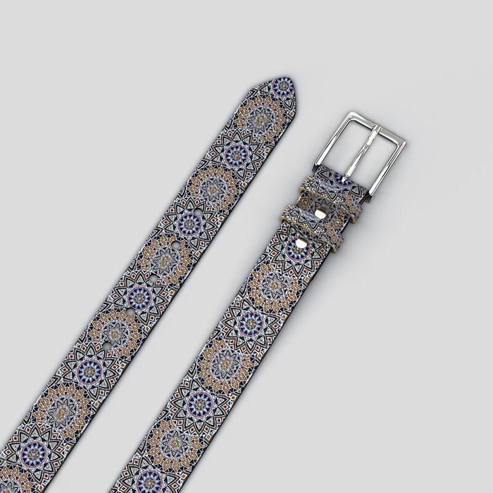 Once printed, skilled makers cut, edge-paint and assemble your belt by hand, adding your choice of nickel or gunmetal buckle and two matching printed loops. The design panel measures 119.97 × 34 mm and is seamlessly repeated along the length, so a bold pattern, logo or monogram works best.