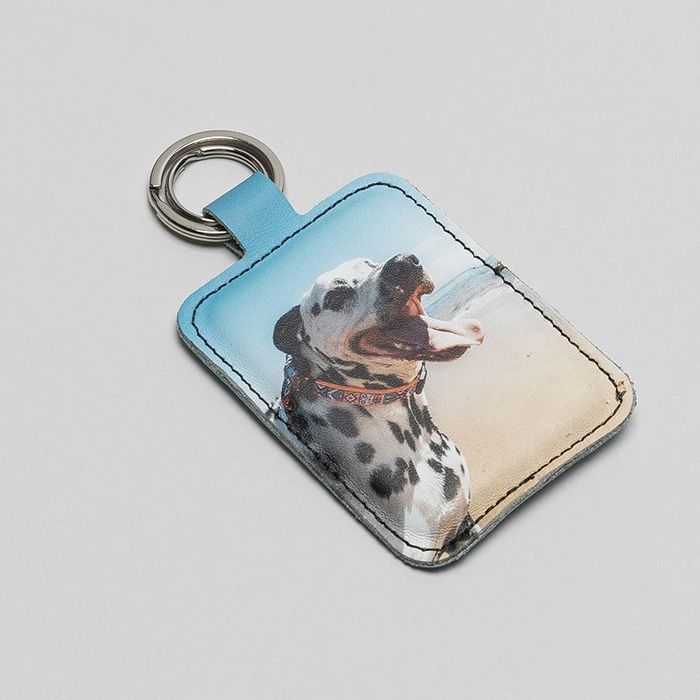 Handy Tip: The tag which holds the metal rings will need to be covered with your design, or else it will not be printed and will remain white. We suggest using the background of your chosen image, so no important features are lost. You could also create a photo montage on your photo leather keychain and add a smaller photo to cover only the ring tag.