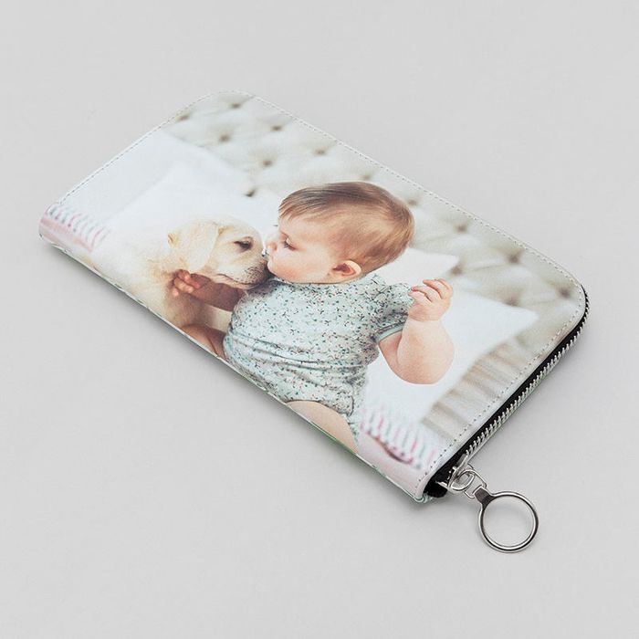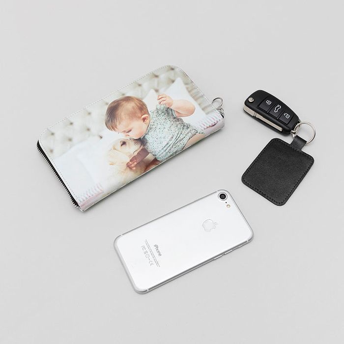 Care: for both the personalised leather purse and oilcloth photo purse, wipe down with a damp cloth. Do not machine wash.