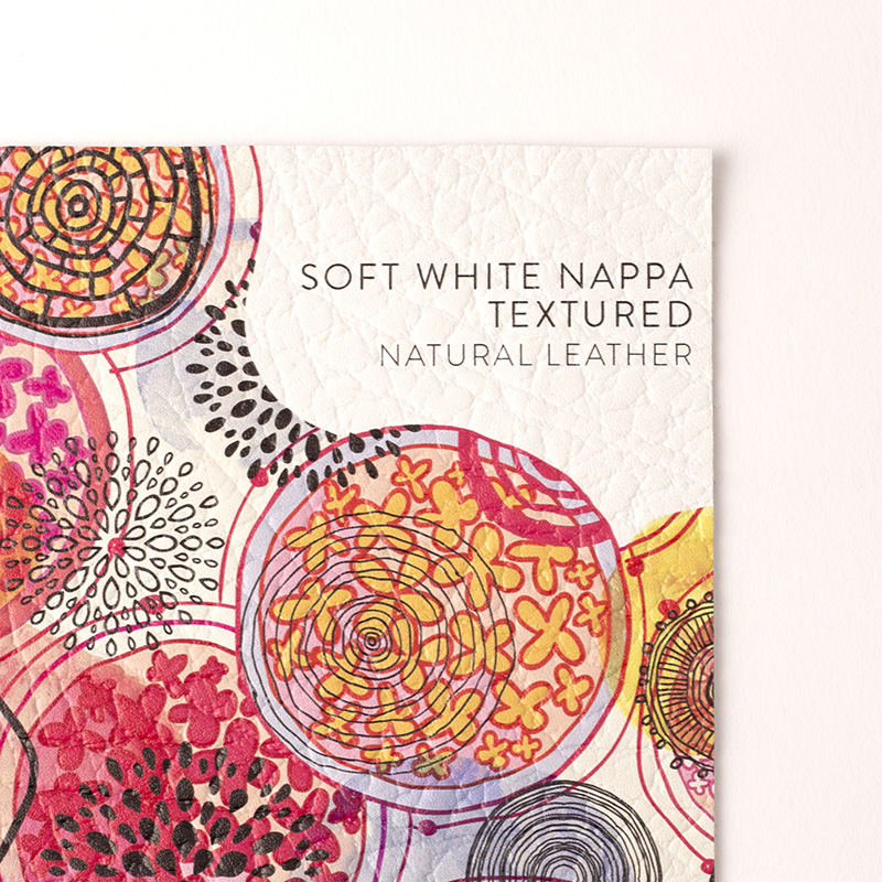 The Nappa leather is sourced via Italian tanneries for printing and finishing in our own in-house atelier studio. This work is by hand and to order. As a full grain, bovine-calf leather, it is graded to the highest level for print and manufacturing quality.