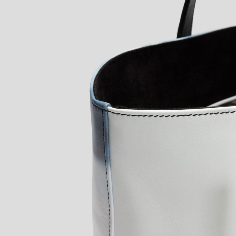 Your Kika printed leather tote is handmade to order in our studio. A printing technician will print your design using the most up to date methods. This technique has been developed solely for leather and ensures a long-lasting print. This makes your personalised leather tote bag design as strong as the leather that it is printed on. We use stunning Nappa leather to make your leather tote bag personalised by you and as with all high-end leather products, the print can lift if you scuff the leather. This is most apparent in corners and along the bottom, and we advise that you take extra care with your Kika printed leather tote. Our craftsmen will then cut your bag to shape before seamstresses stitch it all together for you.
