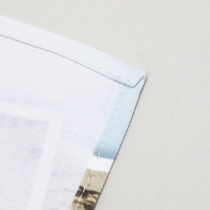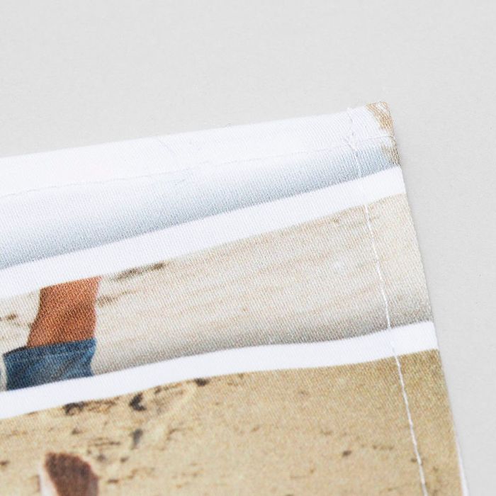 Handy Tip: When creating your design, allow a small bleed area as the hem is hand-sewn. Keep important details away from the edges for best results.