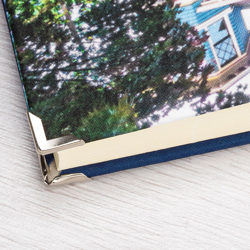 Handy tips: The Monroe satin we use for the hardback covers is a woven fabric, so we recommend using images and designs with bolder detailing or larger photos to ensure a sharp finish. If you'd like to create a photo collage on the front and back, simply upload and select several photos then choose one of our ready-made montage styles or have fun arranging the photos yourself. Just like the potential of your scrapbooking ideas, what you can print to personalise the covers is limitless. The covers have metal corner protectors, however this shouldn't infringe on your design.