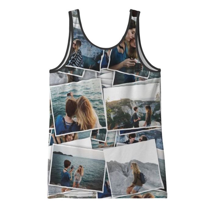 This personalised tank top is a snug fitting, lightweight garment. Perfect for summer wear, or to wear under a jacket all year round. With shoulder straps of approximately an inch and a scoop neck, this personalised vest top can be customised using your photos, images and text. The back scoop sits around three inches higher than the low-cut front, at its lowest point for a traditionally shaped personalised women's vest top.