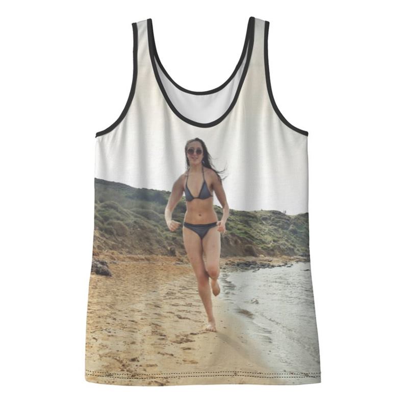 This personalised tank top is a snug fitting, lightweight garment. Perfect for summer wear, or to wear under a jacket all year round. With shoulder straps of approximately an inch and a scoop neck, this personalised vest top can be customised using your photos, images and text. The back scoop sits around three inches higher than the low-cut front, at its lowest point for a traditionally shaped personalised women's vest top.