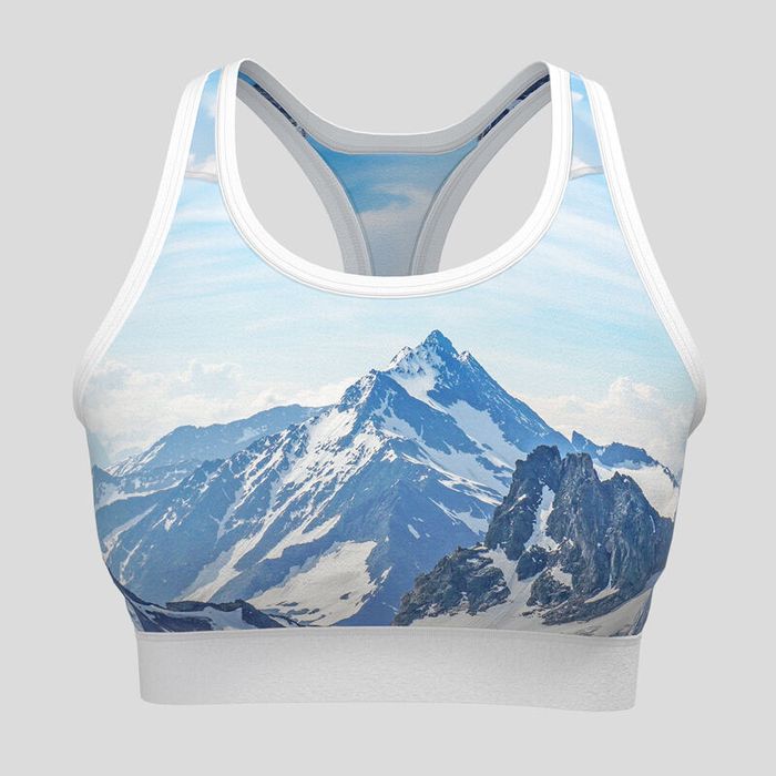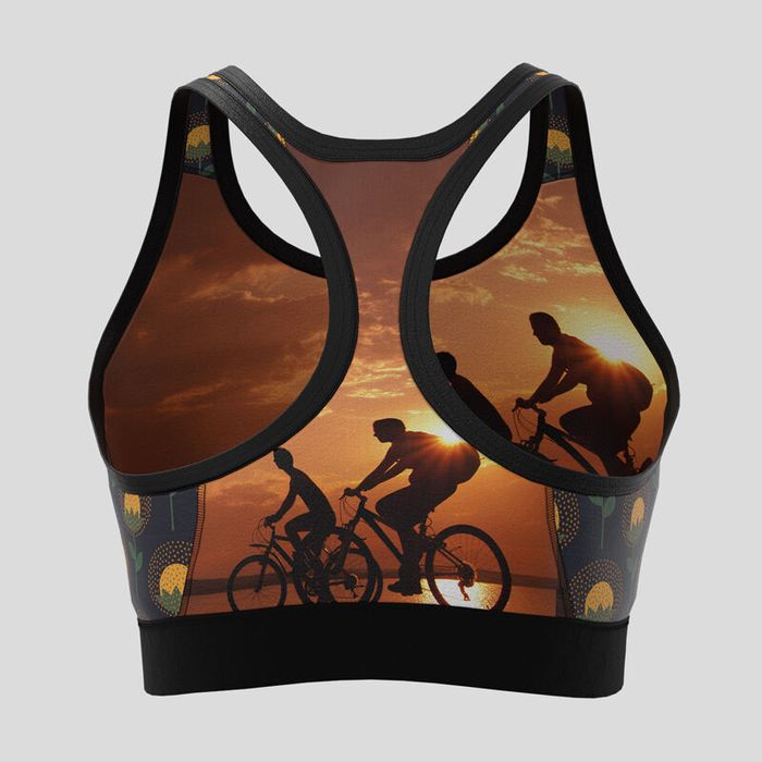 With up to eight areas to customise, there's a bit to think about. But don't worry, it's not complicated! To design your own sports bra, simply upload your patterns or images to the design interface. You can use them to customise the front, back, both side panels, both shoulder straps, and the front and back of the elastic band. Your design will be mirrored on the inside of the sports bra, except for the elastic band. As for what to put on each panel, the front would be best if you want to use a landscape image. We would recommend keeping the focal point in the centre, slightly shifted toward the bottom to avoid getting cut off by the neckline and straps. The rest of the panels are great for solid colours or repeat patterns. Just note that your designs may not align perfectly across the stitching. The binding comes in seven colours, so pick one that matches your design or gives a fun contrast.