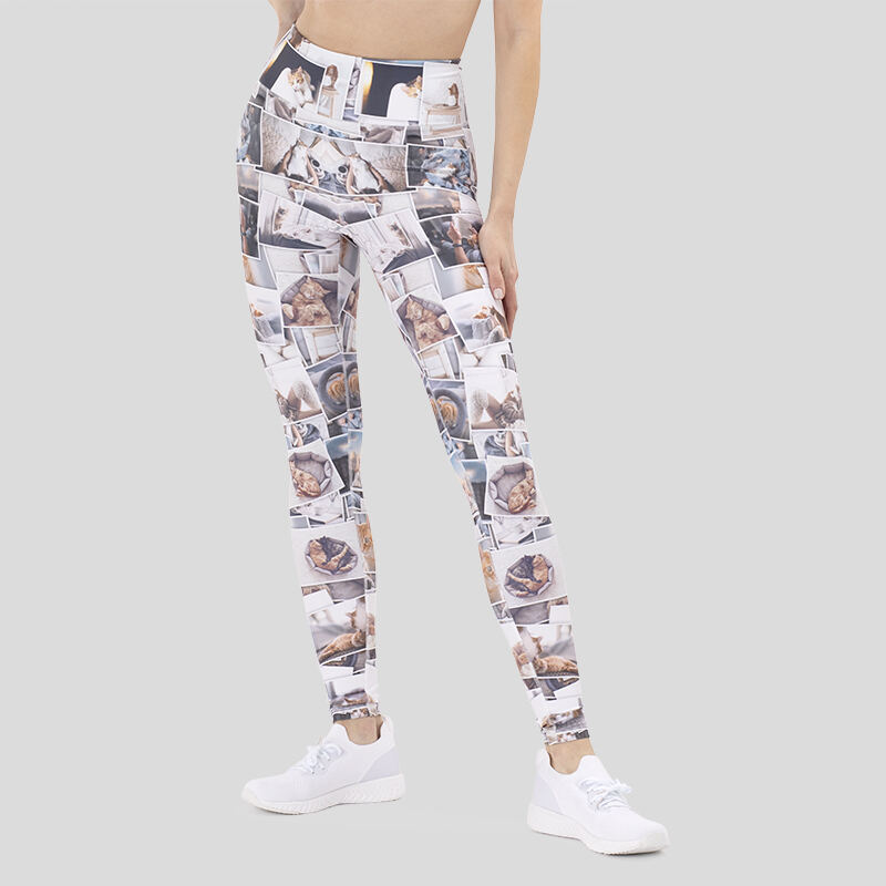 You can use photos, collages, patterns, and illustrations to personalise these leggings. If you go the photo route, we recommend using a collage as this will better display the photos. Patterns and designs work exceptionally well, especially on the waistband, as you'll easily be able to see the print from every angle.