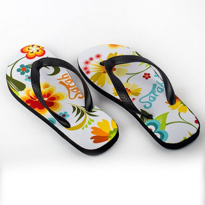 Stop the awkward sandal swap – print your name, photo or logo on both soles and own your beach look.