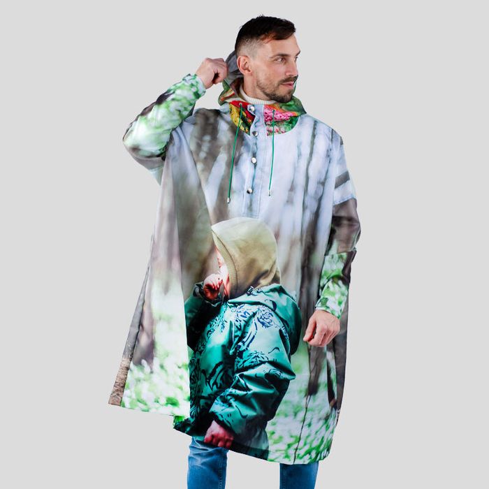 Use the online designer to upload photos, logos or bold graphics. Play with colour blocking, add text or create a repeat pattern – edge-to-edge printing lets your creativity shine. Need inspiration? Browse design ideas for custom printed rain ponchos and start from a template.