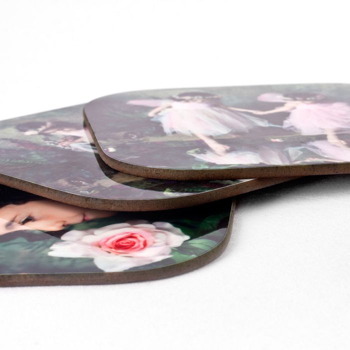 Your personalised drink coasters are lovingly handmade to order. We use a specialist process that bonds the inks deep into the glossy coating, creating a high-definition finish that will not crack, peel or fade over time, even with hot mugs or icy bottles. After printing, each wooden base is trimmed, pressed and quality-checked before being packed for speedy shipping.