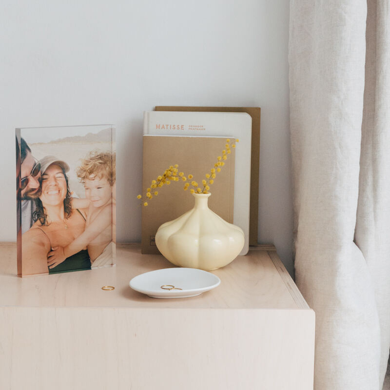 Each image is printed in high resolution directly into the acrylic, so there’s no paper insert that can peel or bubble. The finish is durable and virtually unbreakable, perfect for busy homes with kids or pets. Pick an opaque white back for bold colour, or go for a frosted translucent back that gives portraits a dreamy, soft-focus feel.