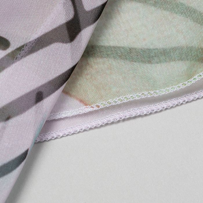 We print your ladies chiffon scarves or shawls in full colour, with glorious edge to edge, permanent inks. Your personalised chiffon shawl will have your design on the face, and depending on the fabric that you have chosen, you should see some show through to the reverse side. If chiffon is not the fabric for you, you can choose from any of our five available fabrics. We have a choice of two natural materials, which offer an amazingly delicate and feminine drape, or three poly fabrics for easier care.