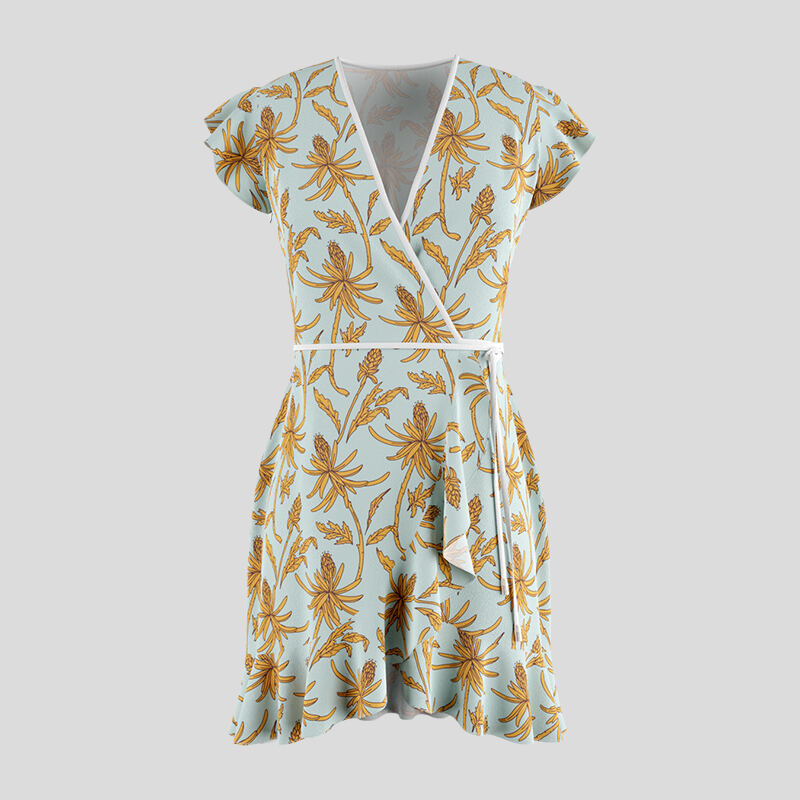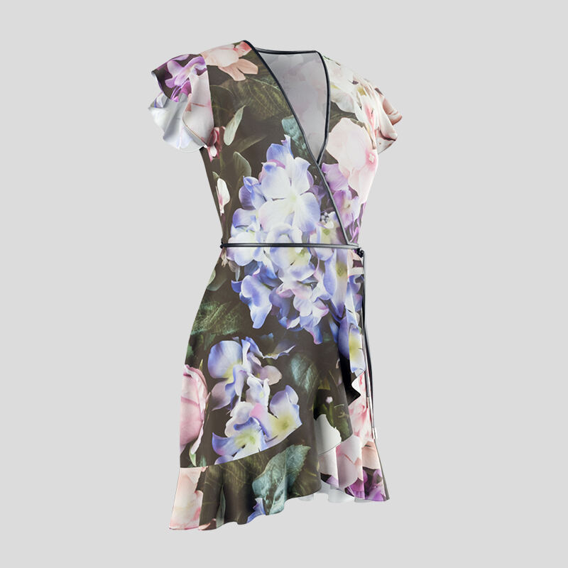 When it comes to designing your wrap tea dress, you can upload your photos to our online design tool and play around with the positioning until you are 100% happy with the way it looks. Our 3D preview even lets you see what your personalised flounce dress will look like in real time.